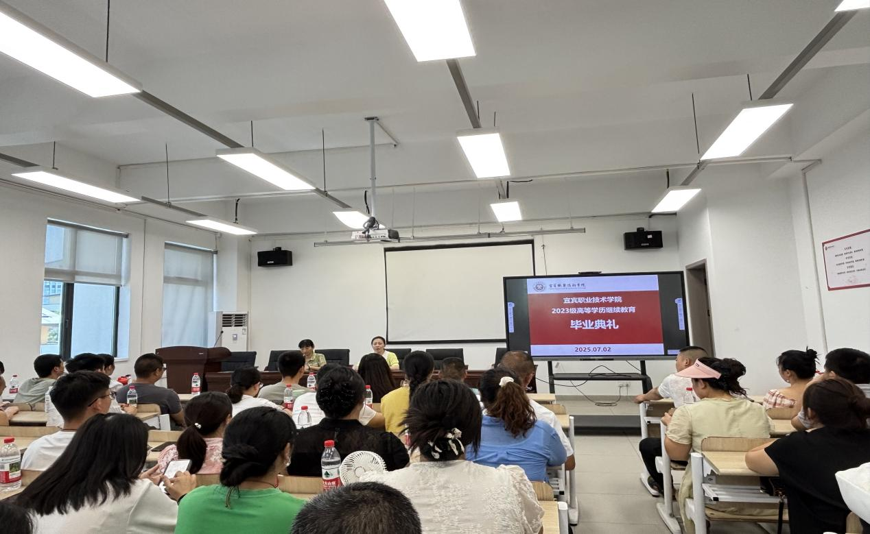 为深入贯彻落实党的二十大精神,扎实推进乡村振兴人才战略,全面提升基层干部学历与综合能力,宜宾职业技术学院2023级高等学历继续教育宜宾班毕业典礼于2025年7月4日在学院文华苑304教室如期举行。学院科技与社会服务处继教科科长谢竹青主持典礼并讲话,继教科其余教师代表出席活动,与2023级宜宾班学员共同迎来这一重要时刻。